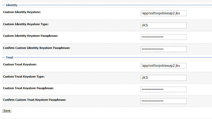 Keystore -> Custom Identity Keystore Passphrase -> Confirm the current value